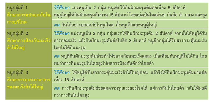 คุณสมบัติในการป้องกันและต้านภาวะอักเสบของมะเร็งลำไส้ใหญ่ของฝักมะรุมต้ม (ทดสอบในสัตว์ทดลอง)