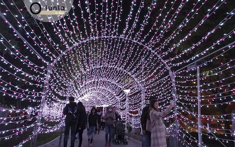 สำนักงานการท่องเทียวไต้หวัน ประจำกรุงเทพฯ ซึ่งเป็นเจ้าภาพในการเดินทางครั้งนี้ นัดทีมไทยแลนด์แต่เนิ่นๆ เพราะรู้ดีว่า นักท่องเที่ยวมากขนาดไหน เริ่มต้นที่สวนสาธารณะเหวินซิน พวกเราเดินถ่ายรูปเล่นเพลินมาก ทั้งโคมไฟรูปสัตว์ รูปผลไม้ และอุโมงค์ไฟยาวที่ใครเห็นเป็นอดลอดและถ่ายเซลฟี่ไม่ได้